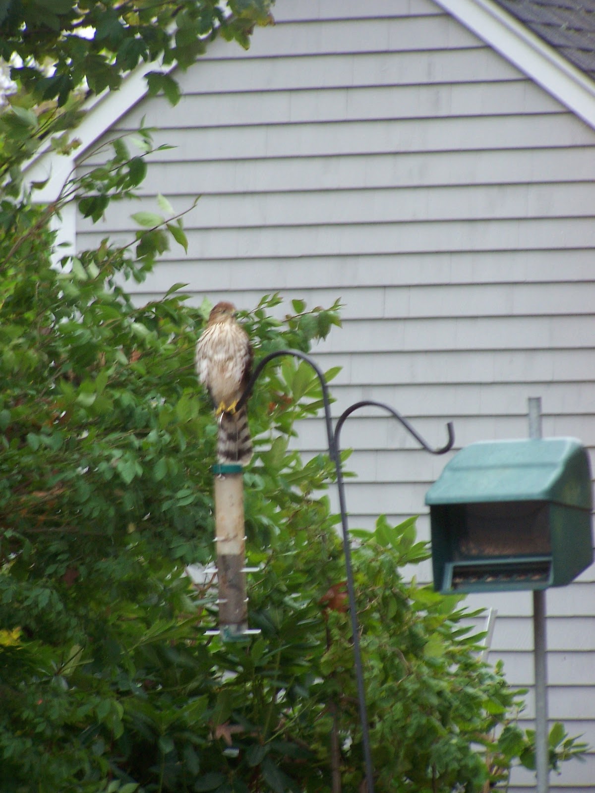 While I was working on my blogs, a hawk swooped in and landed on the birdfeeder. Too cool! That is good luck. Wonder if Ninjaya wanted to grab those tailfeathers.